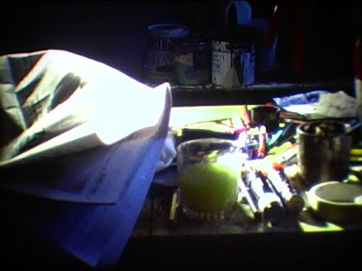 It has been said that Keen’s oeuvre is a fusion of the arts. This programme certainly is a synthesis of several art practices, including painting, music, literature, and sciences. While The Flicker offers a vocabulary of structure, physics, and mathematics, Point of Departure provides the most classic cinematographic aesthetics to the programme, especially considering its dramatic, silent film tone. And, there are, still, infinite common elements among the works discussed here. For instance, both the Dream Machine and The Flicker have been addressed as visual experiences that can produce hallucinations without chemicals, while some relationship could be traced between the intent of Burroughs to erase the word and Jeff Keen’s own Dada-like vocabulary ('blatz', 'blatzom', 'kinozap', 'omozap') and approach towards language: “kill the word, don’t let the word kill you!”.